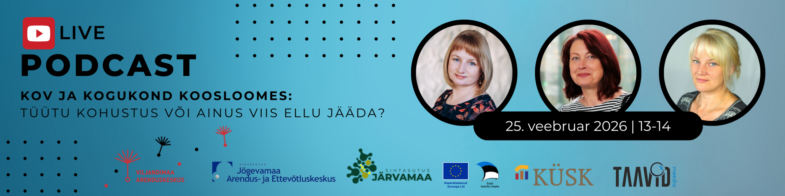 Sinu arvamus loeb! Küsi küsimusi ja jaga oma valla edulugusid podcasti YouTube’i chatis. Parimad mõtted toome otse-eetrisse!