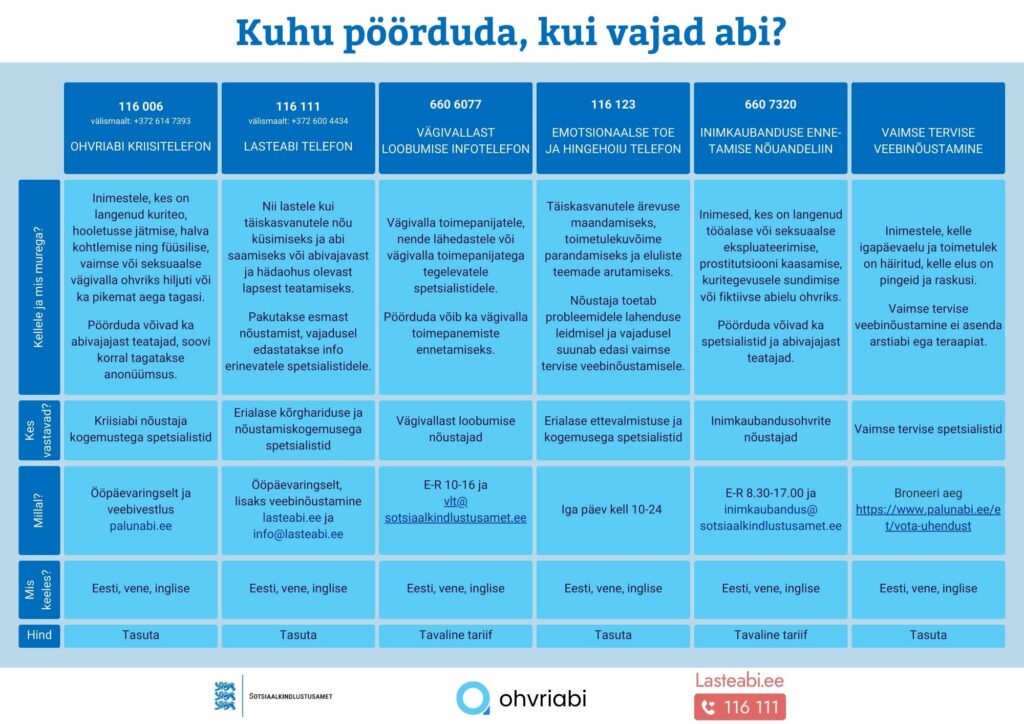Abivajava lapse märkamisest, toetamisest ja temast teatamisest loe lisaks lasteabi.ee lehelt.